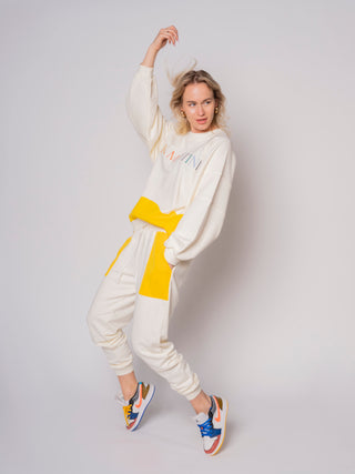 Make a statement with these fun, colorful and stylish sweatpants. A super cozy fit that will take you from the couch to the street. These sweatpants are made of the softest cotton-blend and featuring a relaxed fit. Featuring a playful, embroidered design so you can be sure you’re rocking out that originality every time.